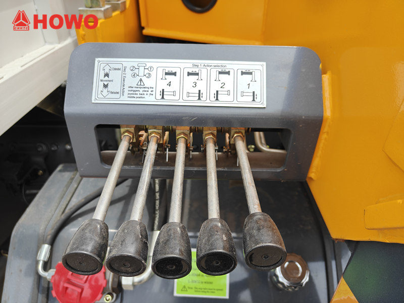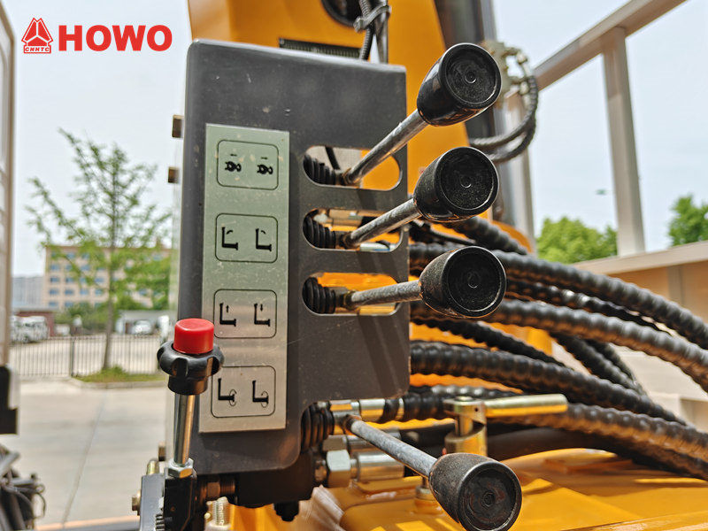Le camion d'assistance HOWO équipé d'une grue de 20 tonnes est construit sur un châssis HOWO NX modifié, avec un empattement de 4 600 + 1 400 mm et 11 pneus 12.00R20. Il est doté d'un moteur WEICHAI WP10.380E22 de 380 ch, d'une boîte de vitesses HW19710 à 10 rapports et d'une direction ZF8118. La partie supérieure est une benne de 6 500 × 2 300 × 450 mm. La grue de 20 tonnes est commandée par des leviers hydrauliques manuels situés de part et d'autre, permettant le déploiement et le repliage des stabilisateurs ainsi que l'orientation de la grue.
