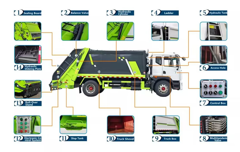 ●Automatisation puissante : Un système de contrôle électronique intelligent automatise la collecte et le compactage des déchets, réduisant ainsi les coûts de main-d'œuvre.