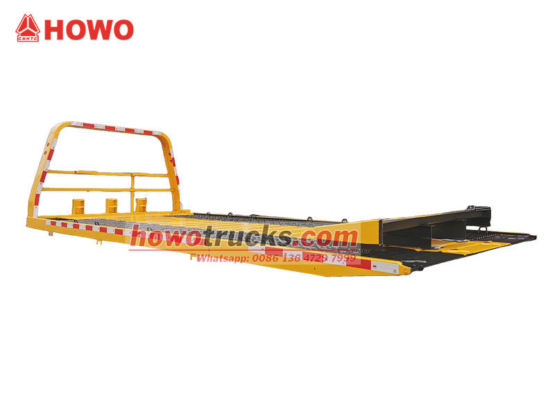 ●Le bras de support est soudé à partir de plaques d'acier haute résistance, ce qui lui confère une structure robuste et une grande capacité de charge. La plateforme est dotée de rainures antidérapantes pour garantir sécurité et stabilité lors du chargement et du transport.