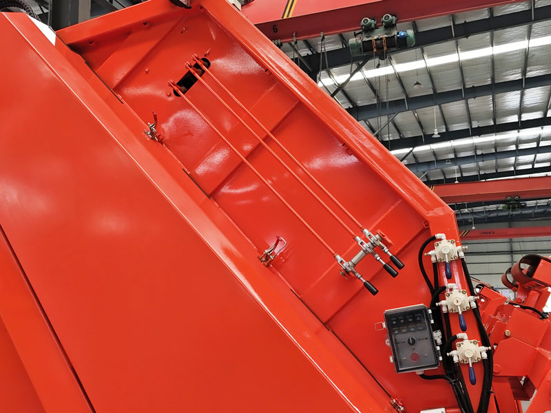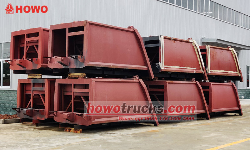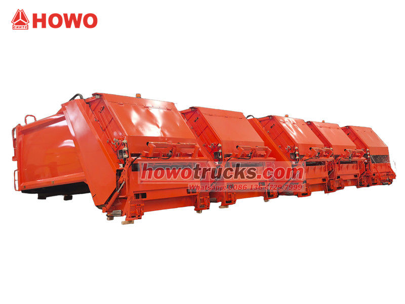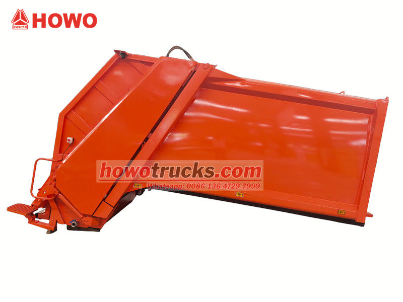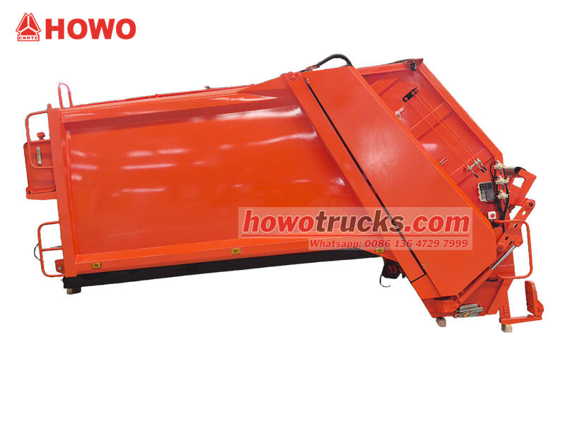 PLC control systemLa superstructure personnalisée du chargeur arrière Howo 10 CBM est construite à partir de plaques d'acier haute résistance soudées, avec des panneaux latéraux moulés d'une seule pièce, ce qui lui confère une robustesse extérieure et une durabilité exceptionnelles. L'intérieur de la caisse bénéficie d'un traitement antirouille spécial, la rendant adaptée aux environnements d'exploitation difficiles.