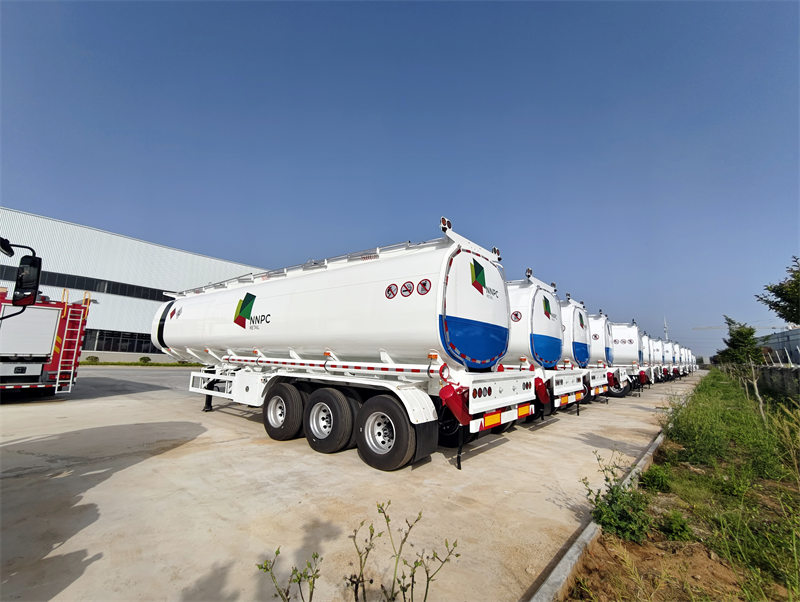 Le nouveau camion à 3 essieux de 40 pieds000L La semi-remorque citerne à carburant est fabriquée en acier Q370R, supporte une pression de service de 1,61 MPa et présente une épaisseur de paroi et de plaque d'extrémité de 8,0 mm, conformément aux normes de fabrication les plus récentes. Elle est équipée de diverses soupapes de sécurité, indicateurs de niveau de liquide, manomètres et autres composants garantissant la sécurité du transport. De plus, elle est dotée de ponts BPW, de broches de traction JOST, de béquilles JOST et d'autres configurations, lui permettant de répondre aux exigences de transport dans divers environnements et sur tous types de routes. Il s'agit d'une semi-remorque citerne à carburant diesel mobile, performante et hautement sûre.