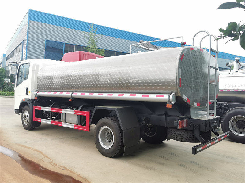 8000Le camion-citerne HOWO de 10 000 litres est un véhicule spécialisé conçu pour le transport de produits alimentaires liquides tels que l'eau potable, le lait et l'huile alimentaire. Il est construit sur le châssis Sinotruk HOWO ZZ1107G. La citerne est fabriquée en acier inoxydable 304-2B de qualité alimentaire, avec une paroi intérieure finement polie, lisse et sans aspérités, garantissant ainsi l'absence de contamination ou de détérioration des liquides transportés. D'une capacité de 10 000 litres, il est équipé d'une pompe à eau en acier inoxydable 80QZ-40/42 (débit : 40 m³/h, hauteur manométrique : 42 m) pour des opérations de chargement et de déchargement efficaces. Tous les composants en contact avec l'eau potable, y compris les canalisations, les vannes et les plaques d'égout, sont en acier inoxydable, conformément aux normes de sécurité et d'hygiène alimentaires. L'arrière de la citerne est équipé d'une échelle en acier inoxydable pour faciliter le nettoyage et l'entretien. Camion-citerne d'eau potable HOWO Il convient à la distribution d'eau potable en milieu urbain, au transport de produits laitiers et au transfert d'huiles comestibles, garantissant un transport de liquides sûr, hygiénique et efficace.