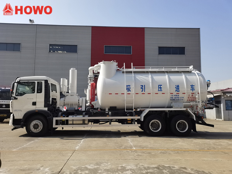 Les chariots convoyeurs à aspiration et à pression HOWO ont deux fonctions principales : l’aspiration par pression négative et le refoulement par pression positive.