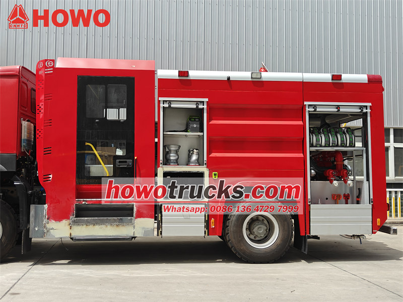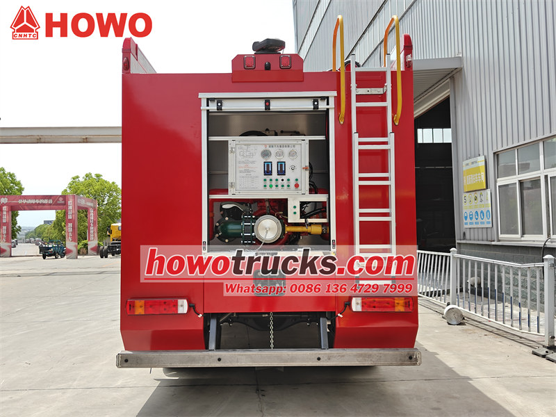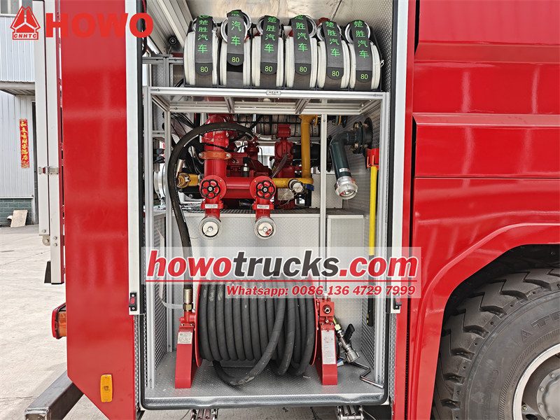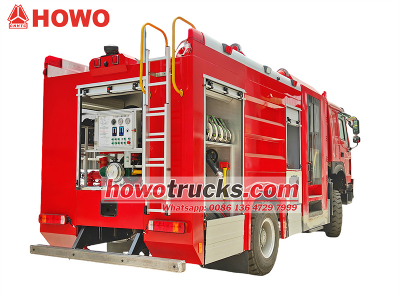 Camion de pompiers à mousse HOWO équipé d'une citerne intégrée, comprenant un réservoir d'eau de 6000 L et un réservoir de mousse de 2000 L.
