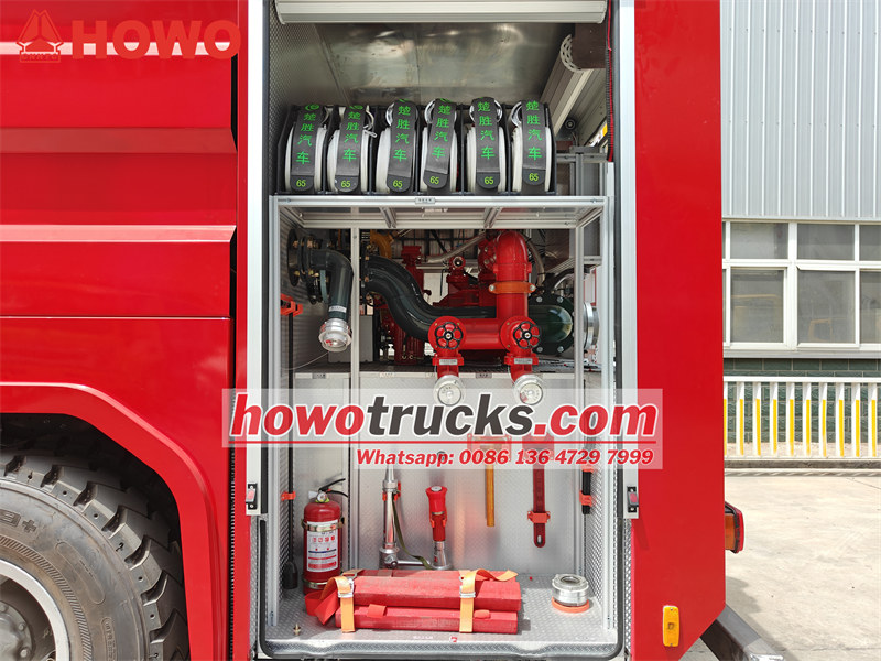 Camion de pompiers SINOTRUK HOWO : réservoir d'eau de 6 000 L et réservoir de mousse de 2 000 L.