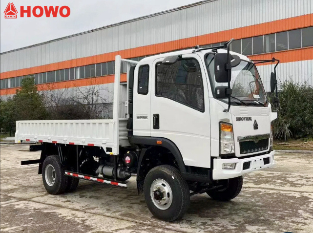 Le camion cargo HOWO 4x4 à quatre roues motrices de 5 tonnes est une version modifiée du châssis-cabine HOWO 2080, un camion léger à une rangée de sièges et quatre roues motrices. D'une masse totale de 9 890 kg et d'une capacité de charge de 5 tonnes, il possède un empattement de 3 800 mm et est équipé d'un moteur Yunnei YN4102QBZL de 116 chevaux et d'une boîte de vitesses à 6 rapports WLY6TS55C. La benne, de dimensions 4 850 × 2 150 × 550 mm, présente une épaisseur de 3 mm sur les côtés et de 4 mm au fond. Les panneaux latéraux et arrière sont ouvrants pour faciliter le chargement et le déchargement.