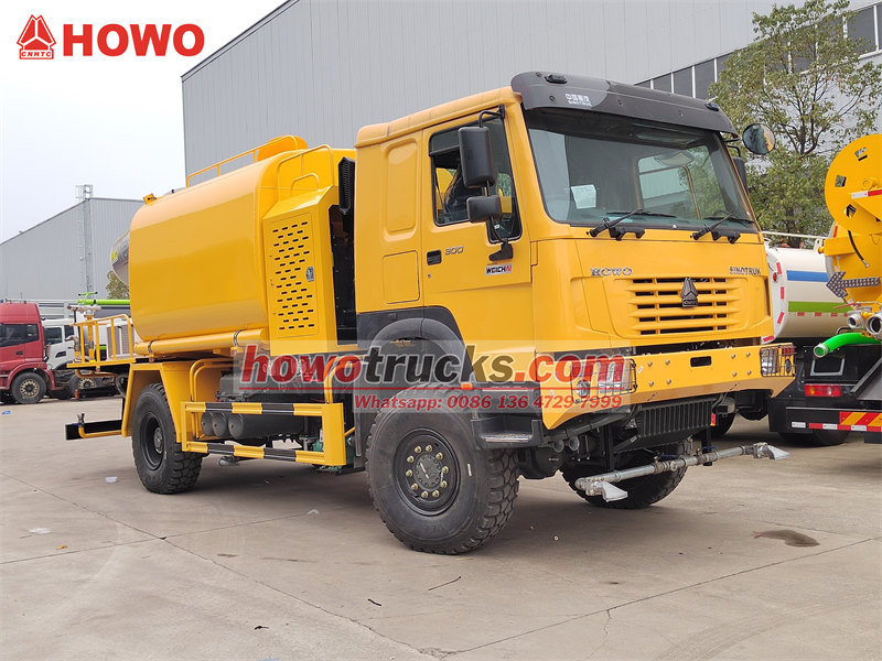 13000Le camion-citerne HOWO 4×4 est un véhicule de lutte contre la poussière multifonctionnel et performant, construit sur le robuste châssis tout-terrain HOWO 4×4, offrant des capacités hors route exceptionnelles. Il est équipé d'un essieu avant directeur STR moulé et d'un essieu arrière moteur ST16, ainsi que d'un empattement large (2022/1830 mm), garantissant une excellente stabilité sur les terrains complexes. Le système de transmission intégrale, associé à un moteur WD615.97C de 300 chevaux, délivre un couple impressionnant de 1 340 N·m, lui permettant d'évoluer aisément dans des environnements extrêmes tels que les montagnes et les déserts.