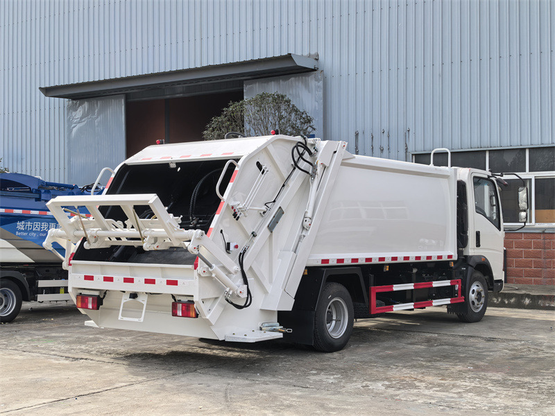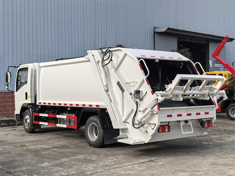 Tank capacity can be customizedLe Compacteur de déchets Howo 6 roues 8 m³ Ce véhicule spécialisé à haute efficacité est conçu spécifiquement pour la collecte des déchets urbains. Sa superstructure, de conception professionnelle, offre une capacité de 8 m³ et est compatible avec les conteneurs à ordures standard de 110 L et 240 L grâce à un mécanisme de chargement arrière permettant un chargement automatique. Son utilisation est un atout majeur : le système de commande CAN-BUS intégré permet au conducteur de réaliser facilement et en toute sécurité l’ensemble des opérations de chargement, de compactage et de déchargement, depuis l’intérieur du véhicule, côté conducteur ou à l’arrière, grâce à un boîtier de commande électronique et des vannes hydrauliques. Il est adapté à la collecte quotidienne des ordures ménagères dans les rues, les zones résidentielles, les zones commerciales, les écoles et autres lieux, et est particulièrement performant dans les rues étroites et les zones à forte densité de population.