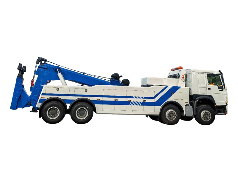 La superstructure constitue le cœur de sa fonctionnalité. Elle intègre un système de flèche d'une capacité allant jusqu'à 20 000 kg et un dispositif de levage capable de supporter jusqu'à 25 000 kg. Elle est également équipée de deux treuils haute capacité pouvant fonctionner indépendamment ou en coordination avec le bras de levage pour redresser les véhicules renversés ou effectuer des opérations de remorquage. Grâce aux mouvements télescopiques et de relevage de la flèche et au réglage précis du dispositif de levage, la dépanneuse HOWO 8×4 s'adapte à diverses situations de sauvetage complexes, en extrayant efficacement les véhicules immobilisés et en les remorquant en toute sécurité.