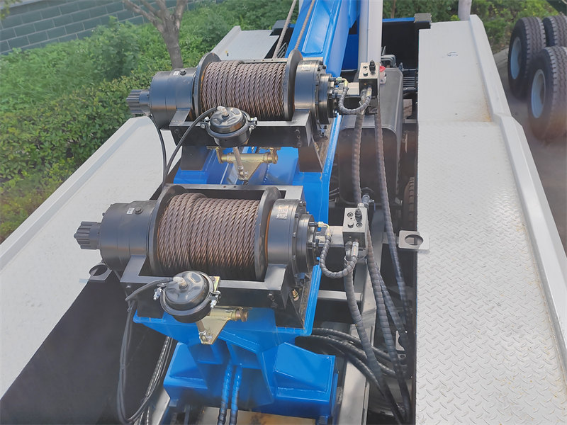 Équipé de deux treuils hydrauliques de 10 tonnes et d'un câble en acier de 45 mètres de long et de 18 mm de diamètre, le camion de remorquage HOWO 8×4 dispose d'un treuil, élément essentiel servant principalement à hisser les véhicules en panne sur le bras de remorquage. Ce treuil fonctionne de concert avec des vérins hydrauliques pour effectuer des opérations telles que le remorquage, le levage et le blocage des roues.