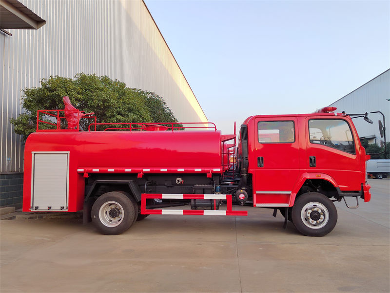 Le camion-citerne de pompiers HOWO 4X4 Rescue est un véhicule professionnel conçu pour intervenir lors d'incendies d'urgence. Équipé d'un châssis HOWO 4X4, il peut accueillir 3 passagers (deux à la place du passager avant et trois à la place du passager arrière). Son moteur ISF3.8S3154 développe une puissance de 154 chevaux, répondant ainsi aux besoins énergétiques du camion. Conforme à la norme antipollution EURO 6, il émet des polluants propres et respectueux de l'environnement. Ses pneus 8.25R16 assurent une conduite stable même en situation d'urgence. Côté performances, ce camion-citerne tout-terrain dispose d'une citerne de 6 000 litres. Équipé d'une pompe à incendie CB10/40 XZ et d'un canon à eau PS40, il offre un débit de 36 l/s à 1 MPa et un débit nominal de 32 l/s à 2 MPa. Avec une portée de plus de 45 mètres, il garantit une extinction efficace des incendies.