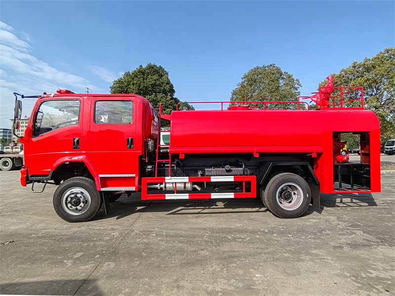7500LeCamion-citerne de sauvetage HOWO 4X4Le camion de pompiers tout-terrain Howo est un véhicule professionnel conçu pour intervenir lors d'incendies d'urgence. Équipé d'un châssis HOWO 4x4, il peut accueillir 3 passagers à la place du passager arrière et 3 à l'arrière. Son moteur ISF3.8S3154 développe une puissance de 154 chevaux, répondant ainsi aux besoins énergétiques du camion de pompiers HOWO 4x4 Rescue. Conforme à la norme antipollution EURO 3, il émet des polluants propres et respectueux de l'environnement. Ses pneus 8.25R16 assurent une conduite stable même en situation d'urgence. Côté protection incendie, le camion de pompiers tout-terrain Howo dispose d'une cuve à eau d'une capacité de 6 000 litres. Équipé d'une pompe à incendie CB10/30 XZ et d'un canon à eau PS40, il offre un débit de 36 l/s à 1,0 MPa et un débit nominal de 32 l/s à 2,0 MPa. Avec une portée de plus de 45 mètres, il garantit une extinction efficace des incendies.