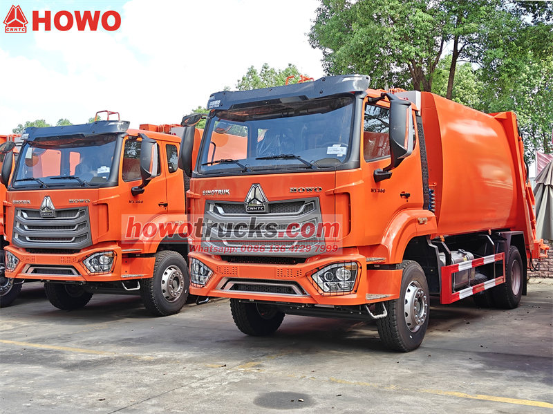Camions compacteurs de déchets à chargement arrière HOWO de 15 m³ prêts à être expédiés vers un pays du Moyen-Orient