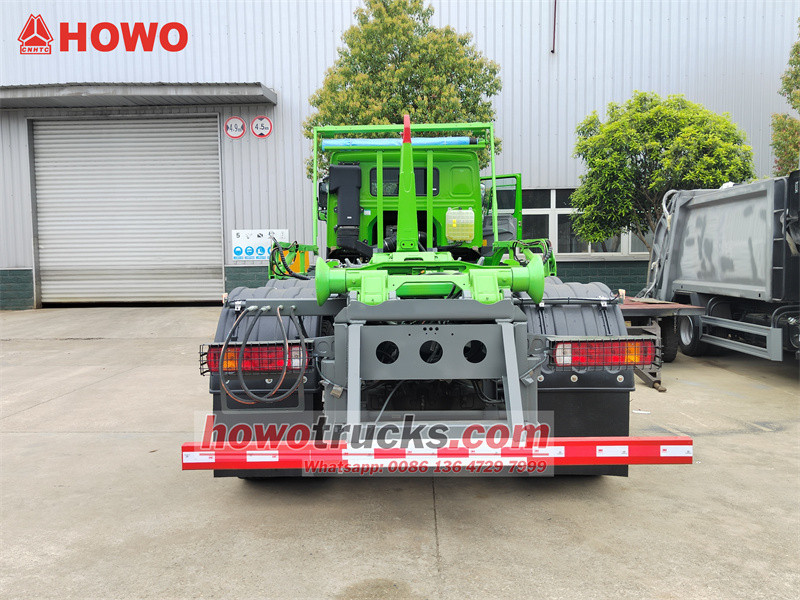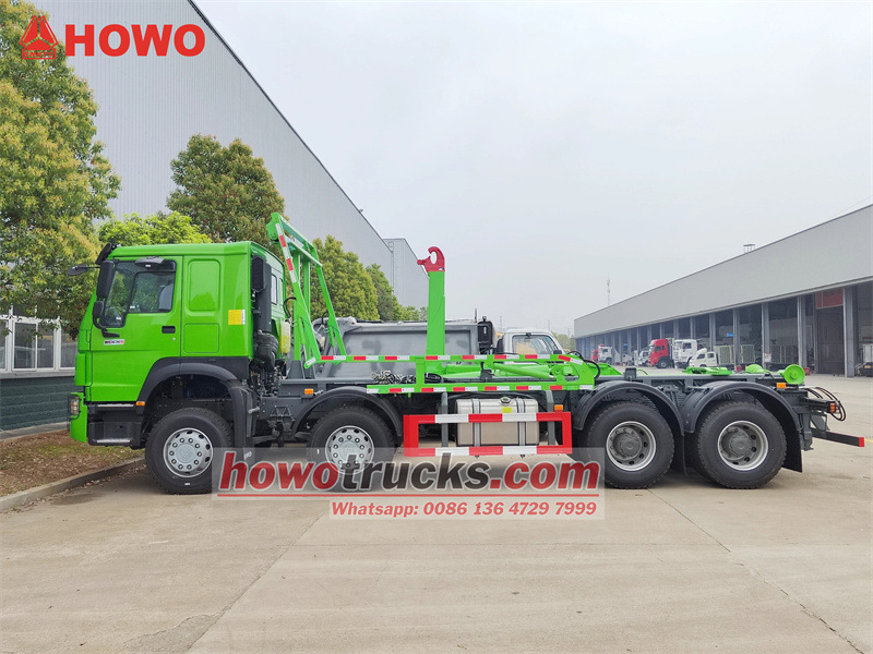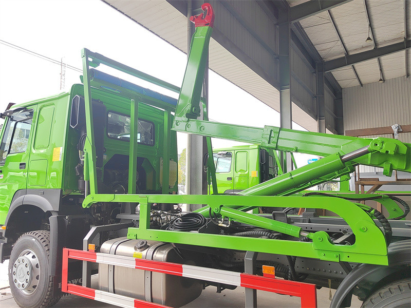 Equipped PALFINGER hooklift unit,sheeting SystemLe Chargeur à crochet HOWO avec système de bâche Ce camion-benne à crochet de levage haute capacité est construit sur un châssis HOWO 8x4, spécialement conçu pour le transport de déchets solides à grande échelle. Son principal atout réside dans l'intégration du système de levage à crochet Palfinger T26 et d'une technologie innovante de bâche automatique à râteau télescopique. Doté d'une capacité de levage impressionnante de 26 tonnes, il actionne hydrauliquement la bâche pour sceller automatiquement le conteneur à déchets tout au long du processus, évitant ainsi efficacement les déversements et la poussière pendant le transport. Un système de verrouillage de sécurité unique empêche le fonctionnement simultané du système de levage à crochet et de la bâche, éliminant ainsi tout risque d'interférence et de dommage et garantissant la sécurité d'exploitation. Il est équipé d'un système de bâche éprouvé, compatible avec tous les équipements de chargement et de déchargement à crochet de levage disponibles sur le marché. Ce camion assure un fonctionnement efficace et respectueux de l'environnement de bout en bout, du chargement au déchargement, en passant par le transfert et le scellage, ce qui en fait un outil puissant et robuste pour la gestion moderne des déchets urbains.