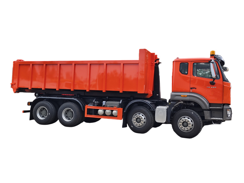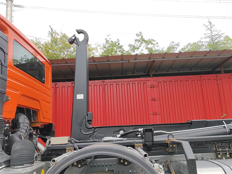HW76 cabin, 6×6, 25 ton hook arm is optionalLe camion-benne à crochet HOWO de 20 tonnes est un véhicule de collecte des déchets de grande taille, construit sur un châssis de poids lourd. Équipé d'un système de bras articulé hydraulique, il assure le chargement, le déchargement et le vidage automatiques et indépendants des conteneurs à déchets. Basé sur le châssis HOWO NX 8×4 et propulsé par un moteur Weichai de 400 chevaux, il affiche une masse totale de 31 000 kg et est conçu pour transporter des conteneurs de 15 à 20 mètres cubes. Son système de bras articulé de 20 tonnes, commandé par des mécanismes hydrauliques, effectue un cycle complet en moins de 45 secondes, offrant ainsi des gains d'efficacité considérables pour le transfert des déchets et le transport cyclique de plusieurs conteneurs.