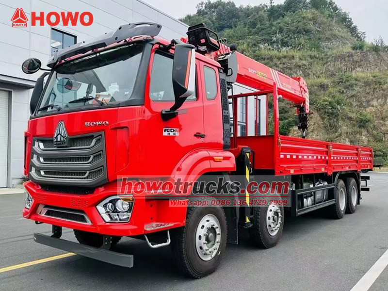 XCMG crane, UNIC crane, knuckle boom crane is optionalLe camion-grue HOWO NX 8×4 est un véhicule multifonctionnel robuste alliant levage et transport. Il est équipé d'une grue Palfinger SPS40000 d'une capacité de levage maximale de 16 tonnes et d'un couple de levage de 40 tonnes-mètres. Sa flèche télescopique à cinq sections s'étend jusqu'à 19 mètres et, grâce à sa rotation complète à 360°, offre une grande flexibilité d'utilisation dans diverses situations de levage. Le châssis, basé sur la série HOWO NX, est propulsé par un moteur diesel de 9,7 litres développant 273 kW, associé à une transmission à 10 rapports et à un système de freinage pneumatique, garantissant ainsi une performance stable même dans des conditions de travail difficiles.