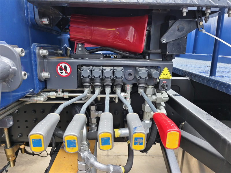 4.Conception optionnelle : comme une flèche articulée, une flèche à benne preneuse, une caisse de chargement en bâche, une épaisseur et une hauteur de caisse personnalisées selon les besoins, et un boîtier de commande à distance.