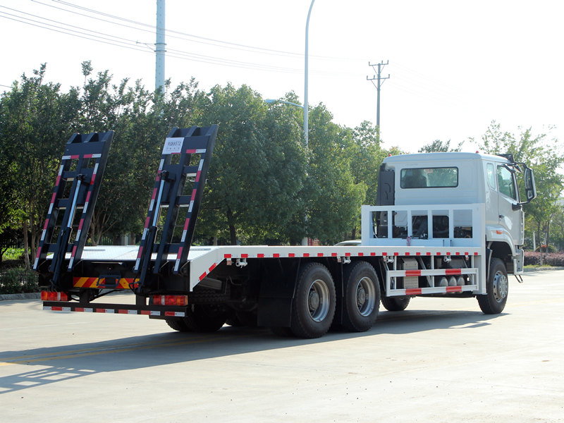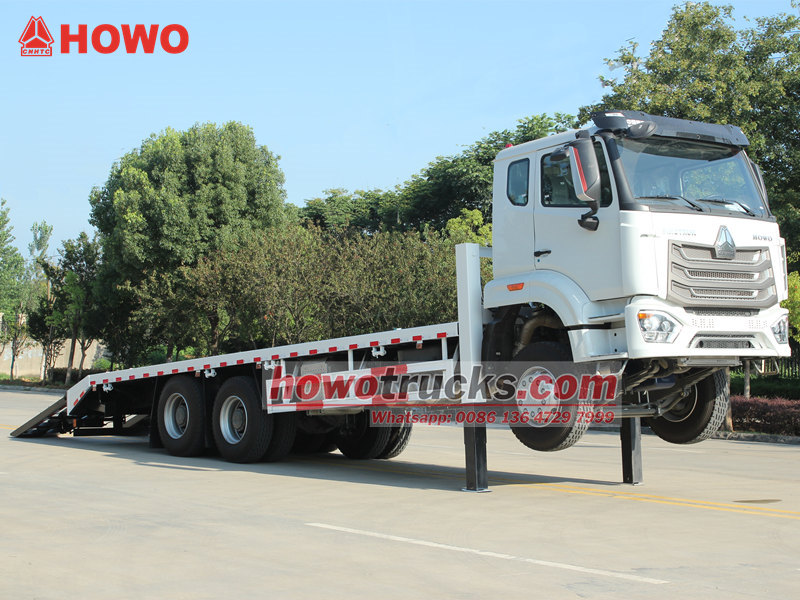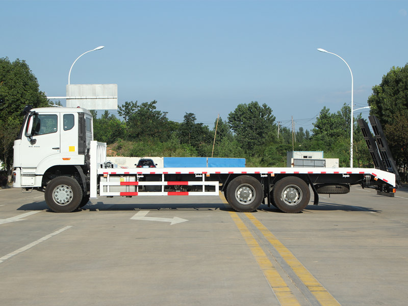 Ce Camion autochargeur HOWO NX Ce véhicule est doté de fonctionnalités professionnelles et performantes. Son plateau, composé de plaques d'acier antidérapantes de 8 mm d'épaisseur et mesurant 8 600 × 2 500 mm, est spécialement conçu pour le transport sécurisé d'excavatrices de taille moyenne et d'autres équipements. L'arrière du véhicule est équipé de deux rampes hydrauliques de 2 mètres de long facilitant le chargement et le déchargement des machines. De plus, deux stabilisateurs hydrauliques avant, d'une capacité de levage de 20 tonnes chacun, améliorent considérablement la stabilité lors des opérations sur terrain accidenté. Un treuil hydraulique de 4 tonnes est également installé à l'avant, utilisable pour les opérations de dépannage ou l'arrimage d'équipements, répondant ainsi pleinement aux exigences des utilisateurs philippins en matière de polyvalence et de fiabilité.