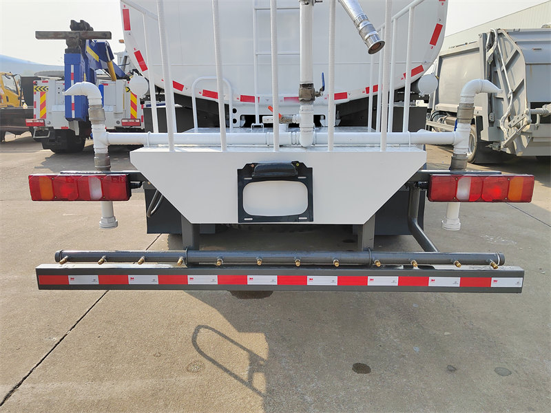 La plateforme de travail arrière est équipée d'un canon à eau haute pression capable d'une rotation à 360°, avec des jets réglables comprenant un jet direct, un brouillard épais, une forte pluie, une pluie modérée, une pluie légère et une bruine.