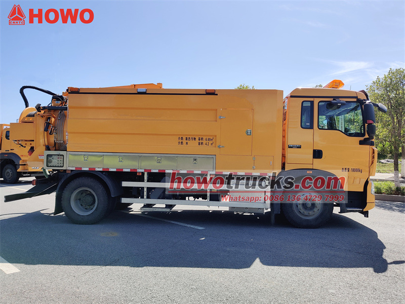 Le camion de dragage combiné HOWO 4x2 de 11 m³ est une version modifiée du châssis semi-cabine HOWO TX 2280. Doté d'un empattement de 4 500 mm, il est équipé d'un moteur Sinotruk MC07.31-60 et d'une boîte de vitesses à 6 rapports. Il comprend une cuve à eaux usées de 6,7 m³ et une cuve à eau propre de 4,2 m³, toutes deux en acier au carbone de 5 mm d'épaisseur. Des coffres à outils sont présents de part et d'autre de la cuve, l'un d'eux étant équipé d'un boîtier de commande, d'un enrouleur de hayon, d'une vanne de vidange, d'une échelle, d'un tube de niveau, etc. Le camion est également équipé d'une pompe à vide Jurop PVT400 et d'une pompe de nettoyage haute pression 3N2-SZ.