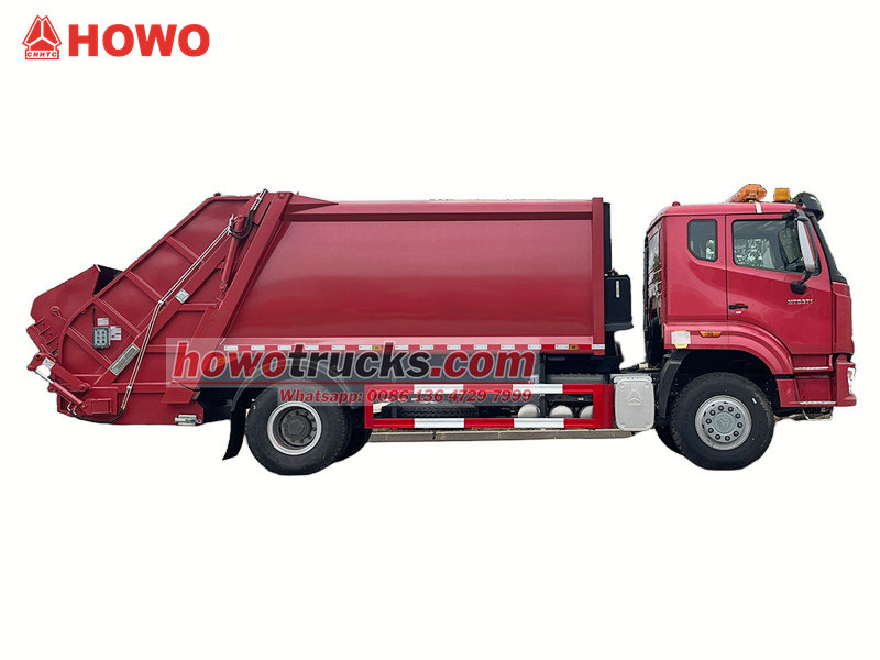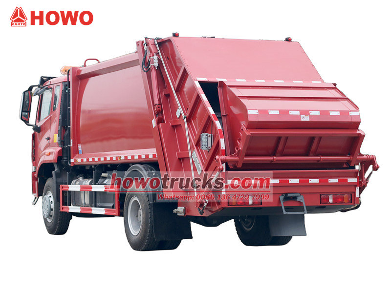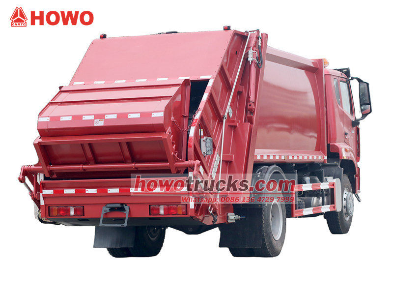 Camion compacteur de déchets à chargement arrière Howo (Nigéria) (également appelé camion broyeur à déchets HOWO 4x2, camion à ordures HOWO avec compacteur, camion à ordures à chargement arrière HOWO 300 ch, camion de compactage de déchets HOWO 15 m³, camion compacteur à ordures HOWO 4x2, camion compacteur à déchets HOWO 15 m³, camion compacteur à chargement arrière HOWO, etc.)est un nouveau type de véhicule d'assainissement spécialement conçu pour la collecte, le transport et l'évacuation des déchets.