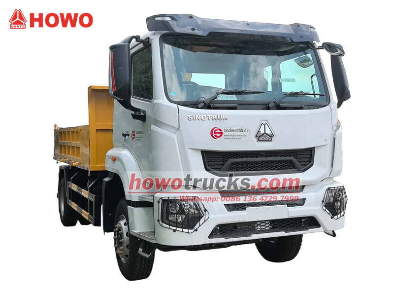 Basé sur le châssis renforcé SINOTRUK HOWO à 6 roues, spécialement conçu pour les camions-bennes. Équipé d'un moteur diesel WEICHAI de 220 ch, d'un châssis et d'une suspension renforcés.