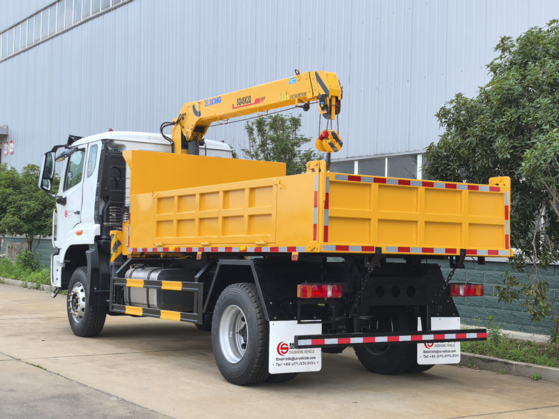 16000Le camion-benne SINOTRUK HOWO avec grue est un engin de chantier multifonctionnel qui combine les capacités de bennage et de levage. Il se compose de quatre éléments principaux : un châssis renforcé SIONTRUK, une grue télescopique à trois sections XCMG SQ4SK2Q, un système hydraulique et une benne basculante. Équipé d'un moteur Weichai de 220 ch et d'une boîte de vitesses manuelle à 10 rapports, il intègre les fonctions de levage et de bennage. Contrairement aux grues embarquées classiques, il est doté d'un système de levage de benne innovant, permettant des opérations de levage dans un rayon d'action de 8,1 mètres tout en assurant le déchargement automatique des matériaux.