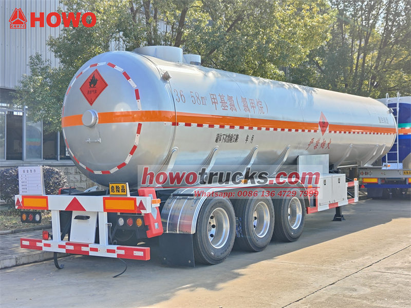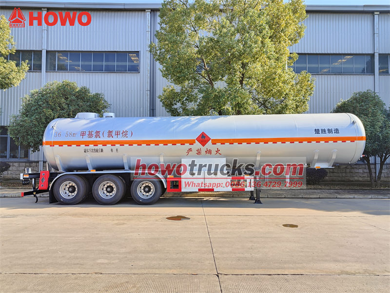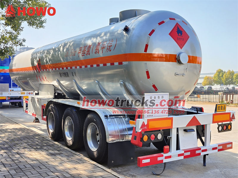 La semi-remorque citerne CS9402GYQA est un véhicule à trois essieux spécialement conçu pour le transport de chlorure de méthyle, d'une capacité de 40 mètres cubes. Sa citerne est fabriquée en acier haute résistance Q420R et supporte une pression de service jusqu'à 1,2 MPa. Elle est équipée d'une vanne d'arrêt d'urgence, d'un système EBS, d'une suspension pneumatique et de freins à disque, garantissant ainsi le transport sécurisé de produits chimiques à haut risque. Ce véhicule bénéficie d'une structure robuste, répond aux normes les plus exigeantes en matière de résistance à la corrosion et de spécifications opérationnelles, et est parfaitement adapté aux environnements de transport de produits chimiques les plus difficiles.